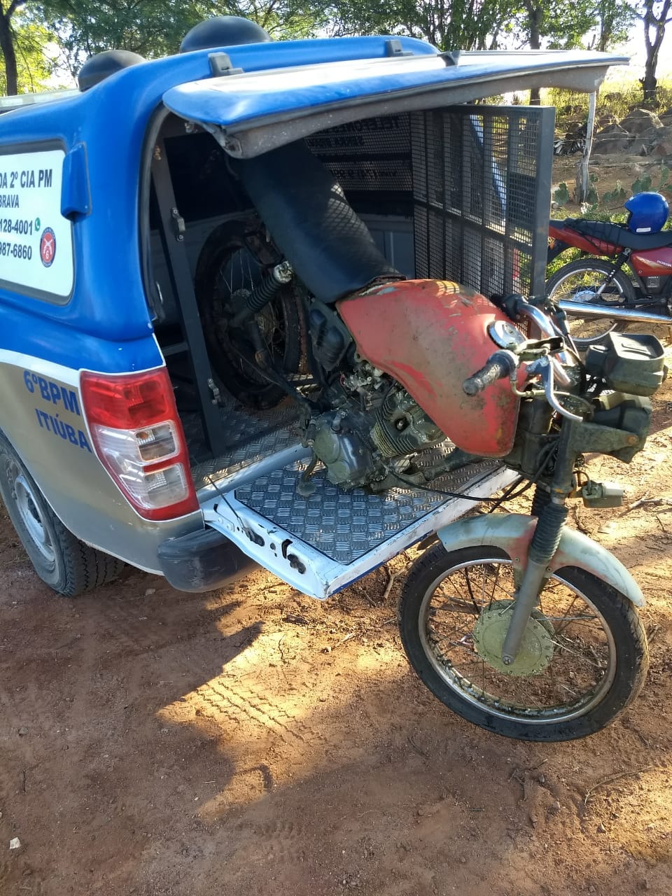 Em Itiúba, nesta segunda-feira (6), às 16h, policiais da 2ª Companhia do 6º Batalhão de Polícia Militar foram até um açude na zona rural do município, onde populares encontraram uma motocicleta Honda CG 125 Titan, de cor vermelha, licença de São Felipe-BA, a qual foi apresentada na delegacia de Polícia Civil para serem tomadas as providências cabíveis.
