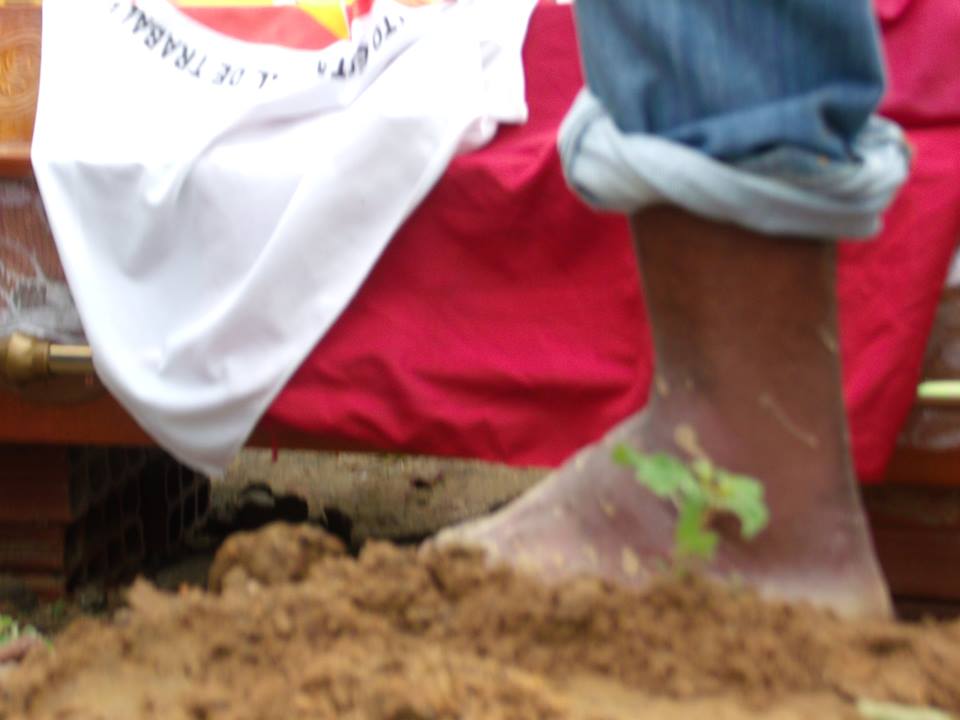A chuva molhava a terra do cemitério e um agricultor disse: “Ele gostava tanto da terra, que morreu na roça e na hora de seu enterro está chovendo”. Neste momento foram jogadas muitas sementes criolas no túmulo, já que Júnior, era um defensor incansável das sementes criolas, inclusive fazia parte de projeto de criação de banco de sementes, para contrapor os transgênicos e manter os agricultores com a garantia de uma produção sustentável.