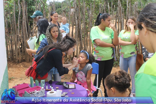 Nesta quarta-feira (18) a Secretaria Municipal de Assistência Social de Antonio Gonçalves, promoveu ação itinerante no povoado de São João. Diversos serviços foram oferecidos aquela comunidade, salão de beleza, alem de brincadeiras com as crianças, e serviços oferecidos pela Secretaria de Saúde. Estiveram presentes o Secretario de  Agricultura Rogério de Souza, e o Vereador Jurandy de Jesus Menezes.