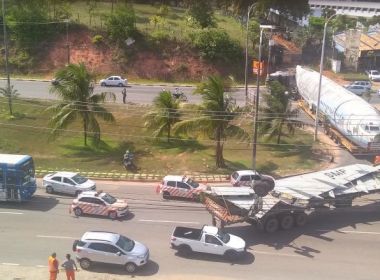 O transporte de um avião antigo da Vasp provocou um engarrafamento durante a tarde desta sexta-feira (23) na Estrada do Coco, em Lauro de Freitas, região metropolitana de Salvador. Segundo informações do jornal Correio, uma aeronave foi retirada do pátio do aeroporto de Salvador para ser levada para o Paraná. Logo no início do trajeto houve dificuldade para contornar um retorno, dificultando a passagem de veículos no local.