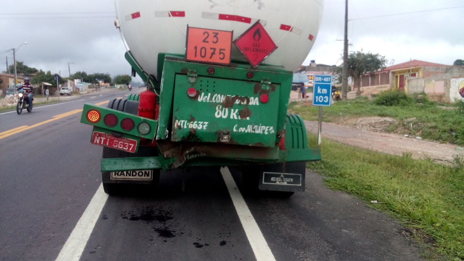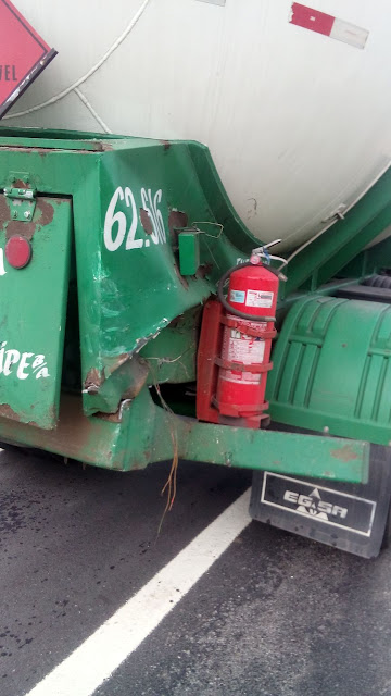 Por volta das 5h10 da manhã desta quarta-feira (17/02) aconteceu mais um acidente na BR 407, desta feita no Km 103, já na zona urbana de Jaguarari. No ocorrido envolveu dois veículos de grande porte, um caminhão carregado com cebola com placa de Chapeco-SC e uma carreta tanque que transportava gás inflamável com placa licenciada de Conceição do Jacuípe-BA.