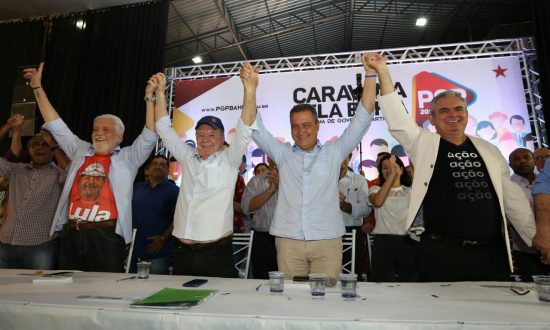 O Partido dos Trabalhadores (PT) oficializou a candidatura de Rui Costa à reeleição ao governo do estado neste sábado (4), durante Convenção Estadual no Parque de Exposições de Salvador. O governador chegou de Metrô ao evento. Também foram confirmados os nomes dos pré-candidatos a vice-governador, João Leão (PP), e ao Senado, Jaques Wagner (PT) e Angelo Coronel (PSD).