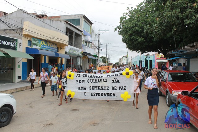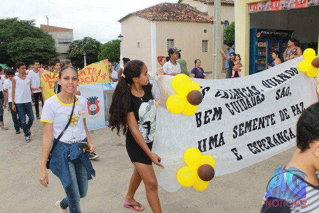 A caminhada contou com a participação de funcionários do CRAS, Secretaria de Assistência Social, Conselho Tutelar, alunos, professores e a Fanfarra do Colégio 05 de Julho. Durante a passeata os participantes fizeram um grande apitaço para chamar a atenção das pessoas.