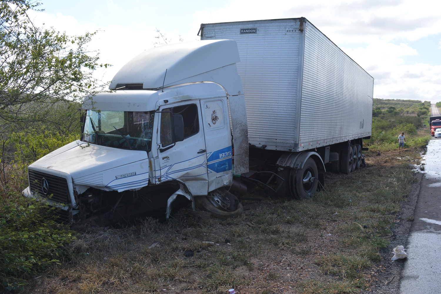 De acordo com as primeiras informações o condutor do veiculo Hyundai HB20, placa PYI-4724 licença de Belo Horizonte-MG, identificado como DANIEL MOURA JÚNIOR, 24 anos, natural de Goiana-PE, teria cochilado ao volante, vindo a invadir a mão contraria colidindo na lateral de uma Carreta Baú Mercedes Benz, placa MUD-2544, licença de Itaberaba-BA, conduzida por Jorge Luiz de 49 anos.Segundo o condutor da carreta que saiu ileso do acidente, o mesmo seguia de Feira de Santana para Juazeiro quando se deparou com o veiculo vindo ao seu encontro. “Eu ia tranquilo a 80 km, pois estava em tempo de deixar a carga em Juazeiro que era só ás 9 horas, quando vi o carro pra cima de mim, ainda tirei para o acostamento. Fiz o que o pude mais não consegui”, lamenta Jorge Luiz que dirige há 30 anos e disse que foi seu primeiro acidente.