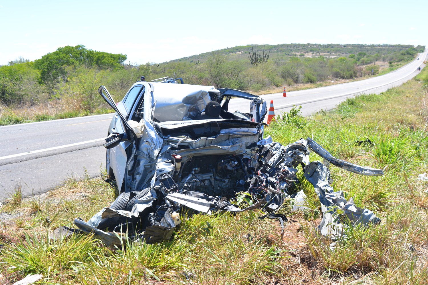 Com o impacto da batida o motor do HB20 foi arremessado a mais de 30 metros do veiculo que também teve parte do teto destruído, o condutor DANIEL morreu na hora ficando preso ás ferragens, seu corpo foi retirado por prepostos do Corpo de Bombeiros e encaminhado ao IML de Senhor do Bonfim, após pericia feita pela Polícia Técnica.