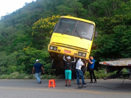 Um ônibus com cerca de 35 passageiros ficou pendurado em uma ribanceira no final da noite de domingo (12), por volta das 23h, no km-601 da BR-242, no município de Muquém de São Francisco, região oeste da Bahia. Apesar do susto, ninguém ficou ferido. De acordo com a Polícia Rodoviária Federal (PRF), o ônibus, que seguia de Santa Maria da Vitória para Ibotirama, subia uma região conhecida como Serra do Cipó, quando o motorista identificou uma falha mecânica e parou o veículo. Em seguida, ele teria colocado um calço em um dos pneus, mas o objeto não sustentou o veículo, que desceu a ladeira e ficou pendurado em uma ribanceira. A PRF detalha que os passageiros conseguiram descer do ônibus e ninguém ficou ferido. A suspeita é de que o coletivo tenha sofrido uma pane elétrica. Até a manhã desta segunda-feira (13), o veículo permanecia no local do incidente à espera de reboque. (G1)