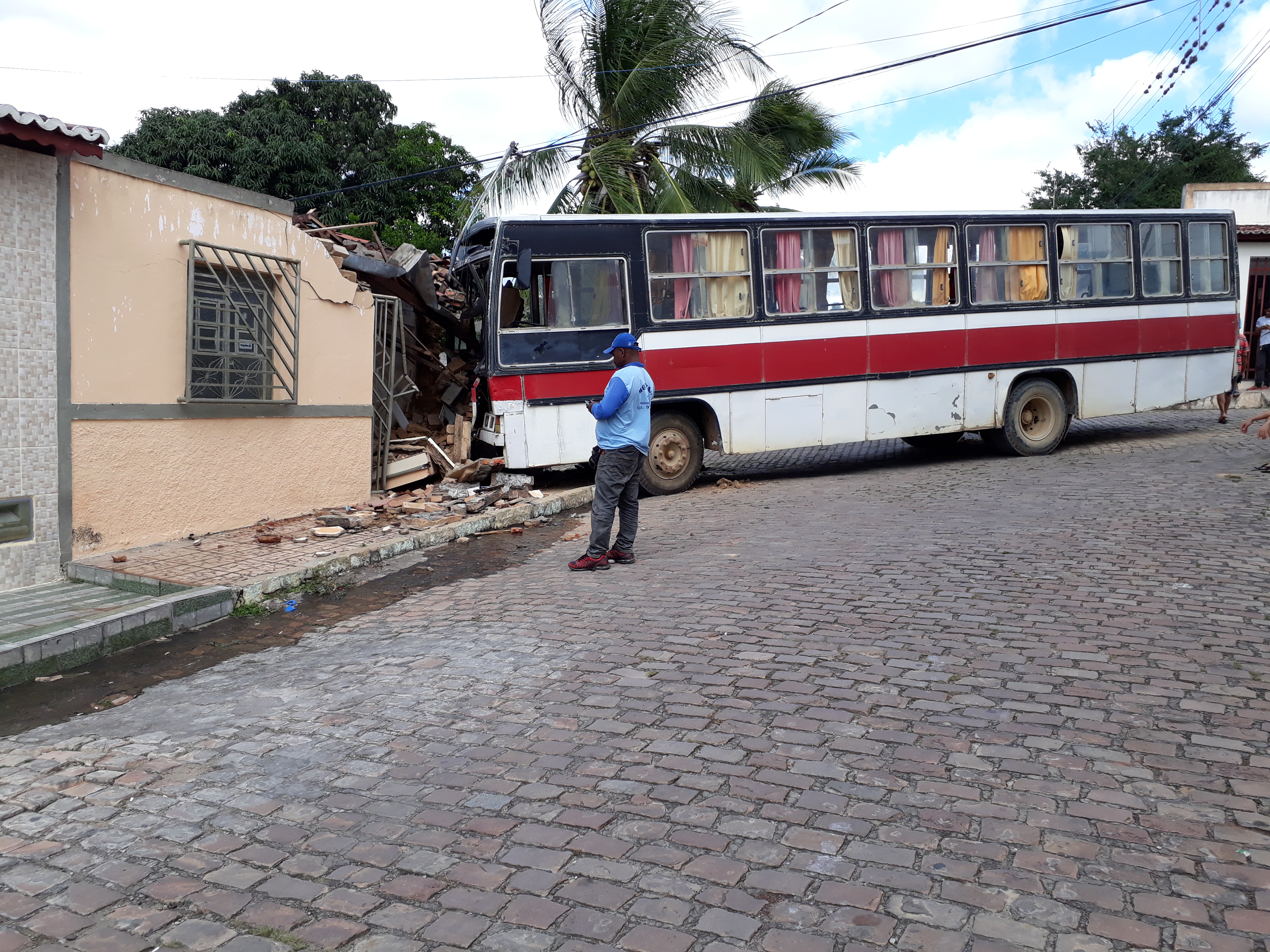 Nesta quarta-feira (23), um ônibus que faz linha para a zona rural do município, faltou freio e acabou batendo em uma residência que fica ao lado da Igreja Assembléia de Deus, no Centro da cidade de Antônio Gonçalves.