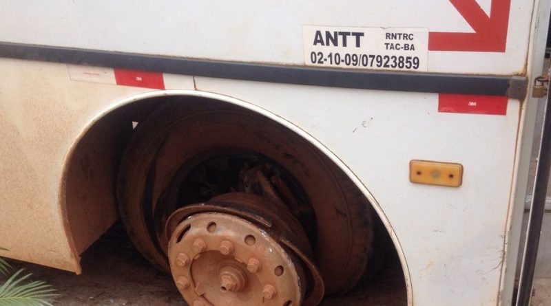Ônibus que transportava estudantes tem pneu destruído e por pouco não provoca tragédia em Jaguarari