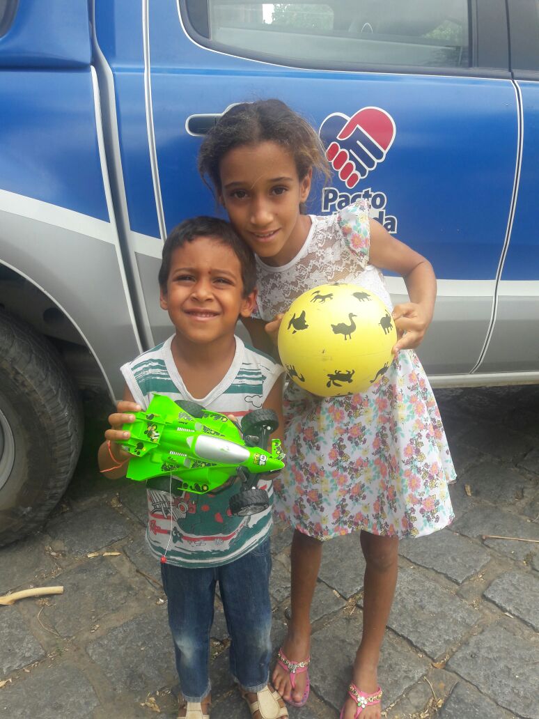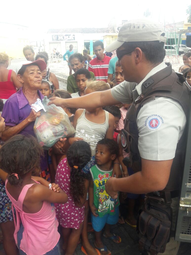 Comandante do 4º pelotão – Ant. Gonçalves, juntamente com outros PMs, fizeram a alegre de varias Crianças e Famílias de Antonio Gonçalves presenteando os com alimentos e brinquedos, que deixaram as crianças com um sorriso esplendido.
