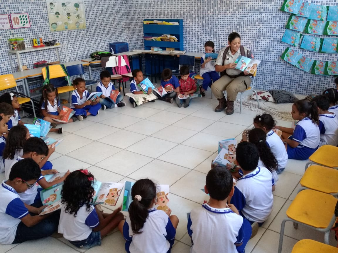 A 54ª CIPM – Campo Formoso, apresentou hoje no Colégio Nossa Senhora Auxiliadora, da rede pública o mais novo projeto da Polícia Militar “RODA DE LEITURA”, projeto de autoria de um Sargento, visando despertar nas crianças o Hábito da Leitura, ensinando aos pequenos valores e conhecimentos. Os policiais Cb PM Ana Cláudia e o Sd 1ª Cl PM Adailton estiveram em duas turmas e foi um encontro espetacular, contagiante, emocionante, após a “Roda da Leitura”, os meninos e meninas foram indagados e sobre a leitura e surpreendentemente responderam a todas as perguntas. Mostrando atenção e interesse com o assunto.