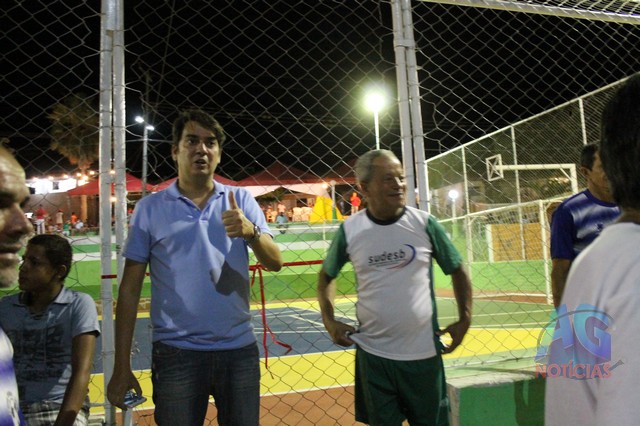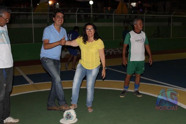A prefeita falou também sobre a praça, que foi construída, e que recebeu o nome do Sr. Manoel Oliveira, que doou o espaço para a construção. ” Eu quero agradecer ao Sr. Manoel Oliveira, nosso querido “Vaca Velha, como é chamado e conhecido na região, que teve a hombridade de doar um terreno anexo a quadra, onde construímos uma praça descente, com arquibancada, que vai possibilitar as pessoas assistirem aos jogos, colocamos luzes, e calçamento com lajota”.