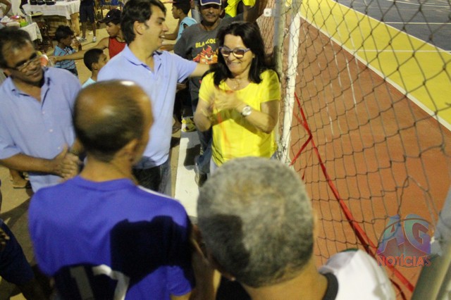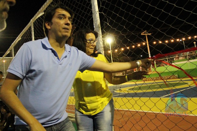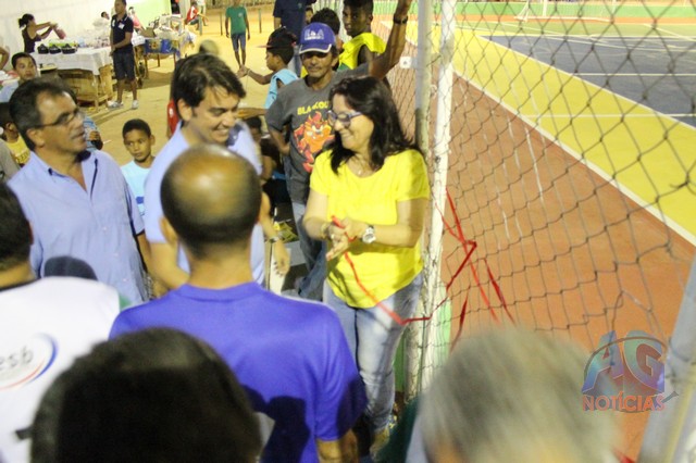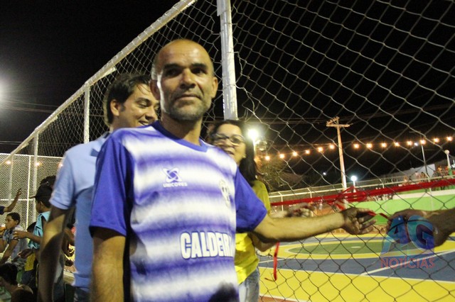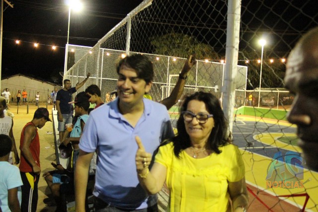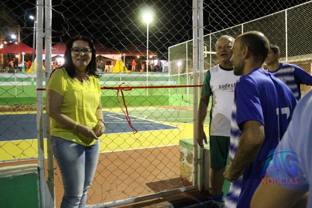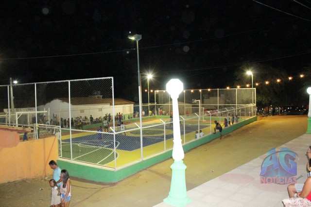 A prefeita falou da importância da quadra, que estava bastante deteriorada, e que agora está bonita”Com a extensão do Programa Mais educação, estamos entregando para a população de Caldeirão do Mulato, a quadra de esportes que anexamos à escola Paulo Ribeiro, revitalizada. É uma quadra que já existia, mas estava bastante deteriorada, e nos conseguimos restaurar o piso, a tela, pintar, e tá sendo entregue novamente para os alunos da Escola Paulo Ribeiro, e aos jovens que praticam o esporte, uma quadra bonita”.