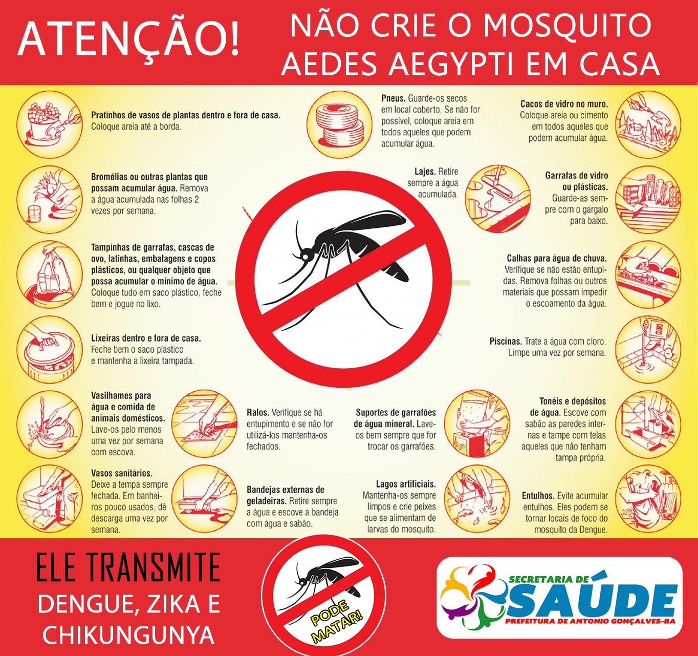 A secretaria Municipal de saúde de Antônio Gonçalves, através da Vigilância Epidemiológica lança uma campanha de sensibilização para toda a população no combate a Dengue, Zica e Chikungunya em 2018.