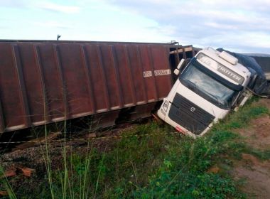 Trem e carreta colidem e batida interdita BR-242 entre Castro Alves e Sapeaçu